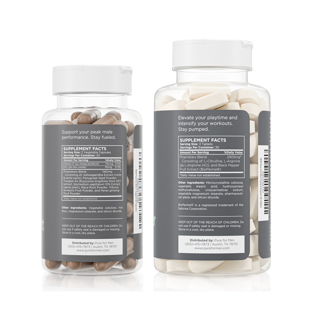 Our proprietary performance supplements are a targeted daily routine that supports natural energy, stamina, and overall male vitality, helping you stay consistent, focused, and ready for all things physical.